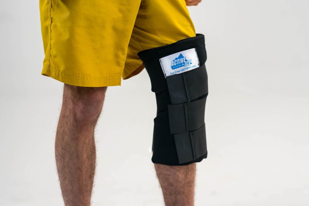 The ice knee wrap provides cold therapy to the knee, lower quad and upper shin for a full-coverage treatment solution.